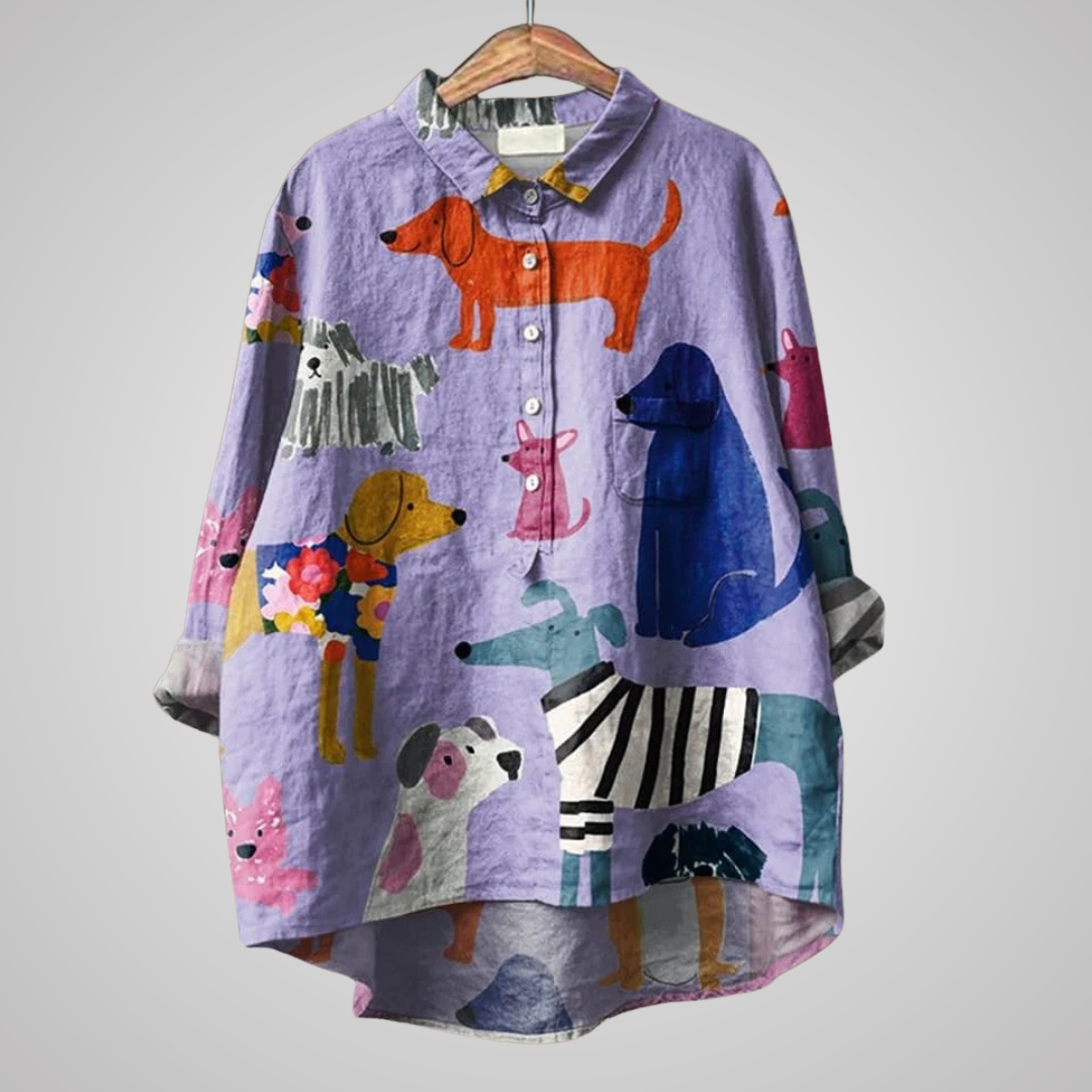 Kathrin™ | Premium Damenbluse mit Hundedruck