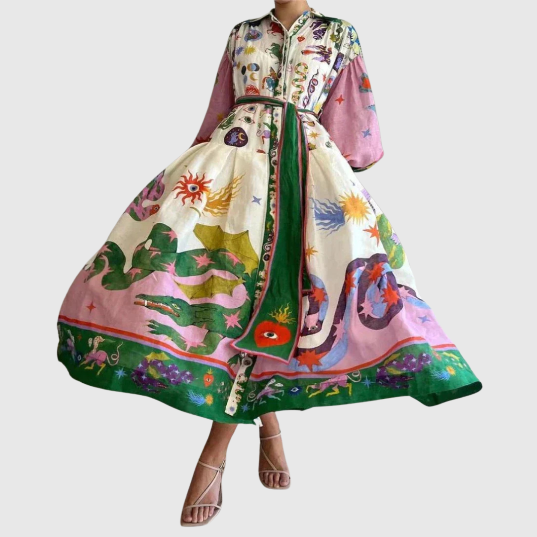 Lia | Farbenfrohes Maxikleid mit stilvollem Muster